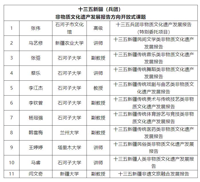 2022年度自治区高等学校人文社科重点研究基地·新疆非物质文化遗产研究中心开放式课题申报通知发布后,我们共收到33项申报书(含特别委托项目),这让我们倍感荣幸和鼓舞。我们特别感谢所有申报学者对新疆非物质文化遗产研究与保护事业的关注,感谢来自疆内外不同高校的各位同仁对beat365在线唯一官网新疆非物质文化遗产研究中心的鼎力支持。经过专家们的认真评审,我们拟立项16项开放式课题,下面将立项名单公示如下: