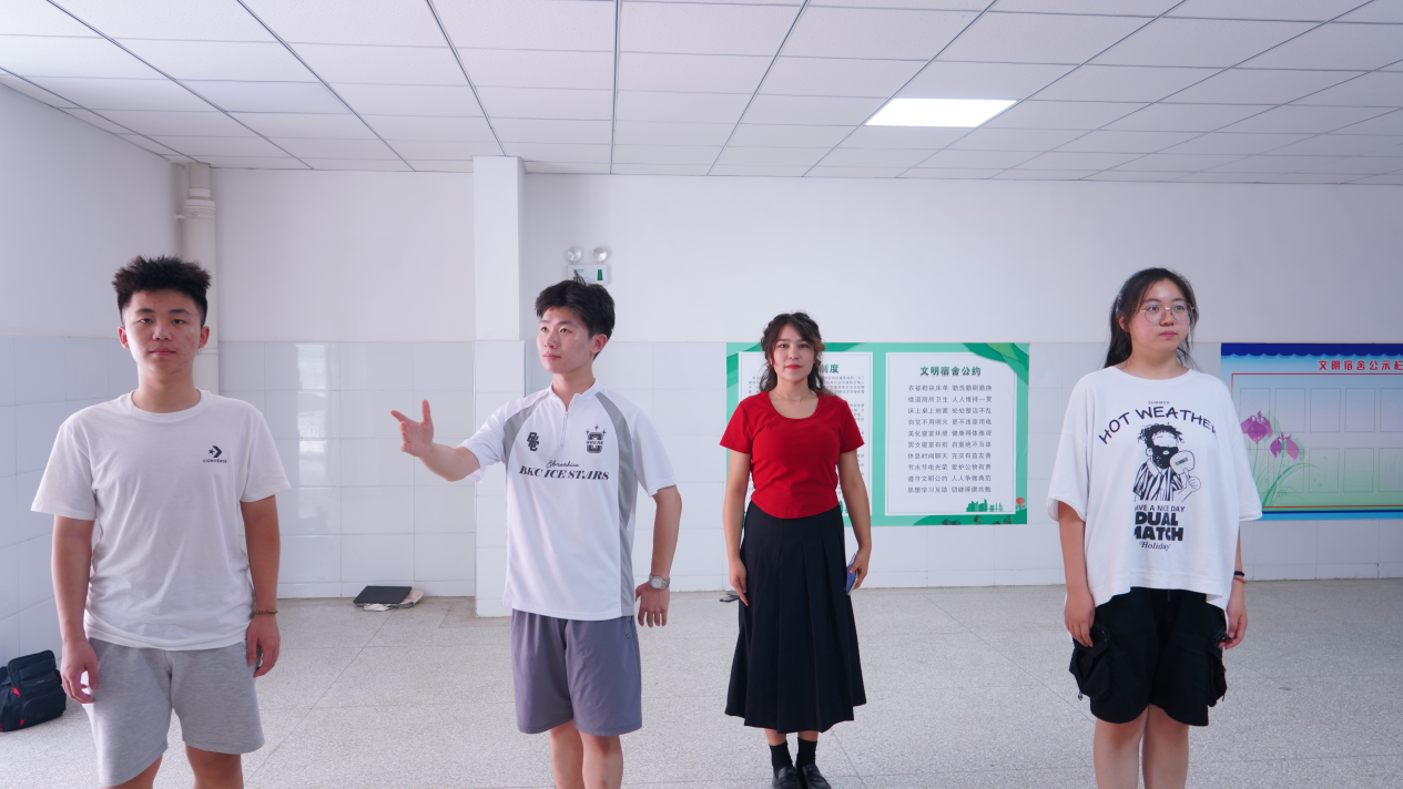 第三师图木舒克市团委书记徐炜杰亲临现场,观看学生排练。音乐与舞蹈系宋夕险老师悉心指导,从表情、动作到舞台队形,帮助同学们呈现更好地表演状态。同学们展现出高度的组织纪律性和团队协作精神,不断打磨每一个细节。参与朗诵的同学也不甘落后,在指导老师的带领下,仔细推敲每一句朗诵词,练习情感表达效果。