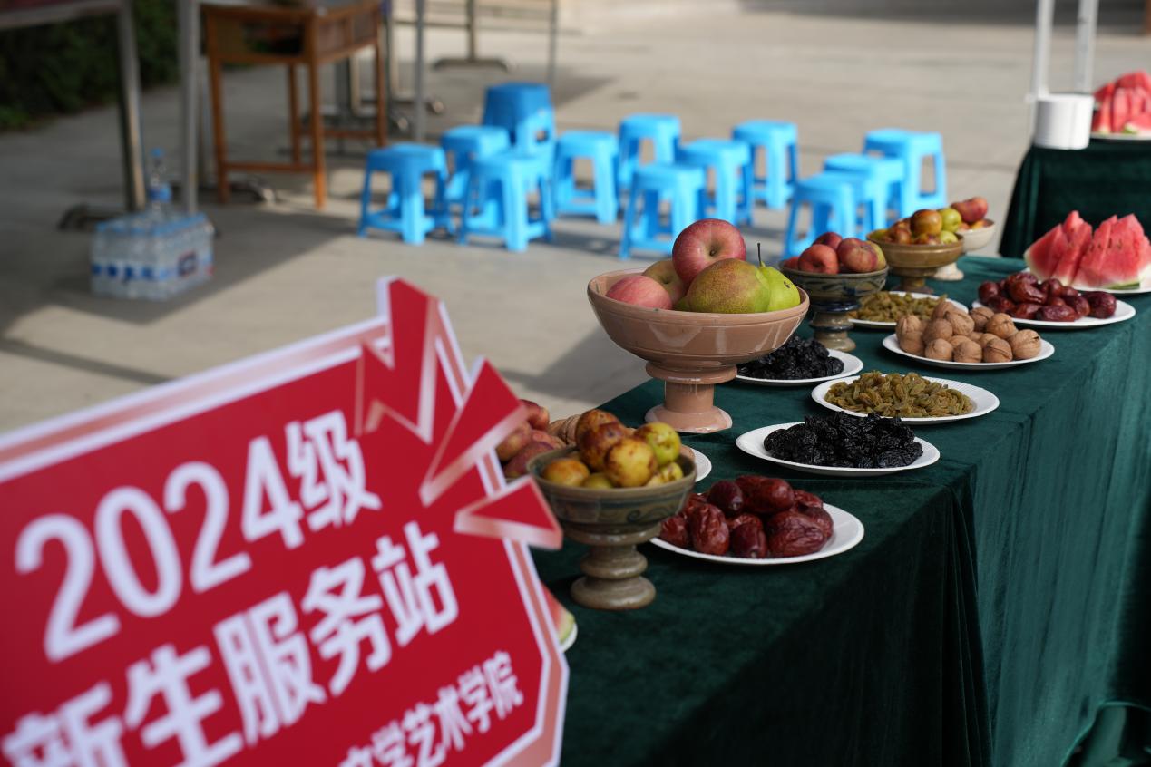 这里不仅有行李寄存处,还为大家提供了家长休息的地方,更有新疆特色瓜果美食,让各位同学和家长缓解疲劳。