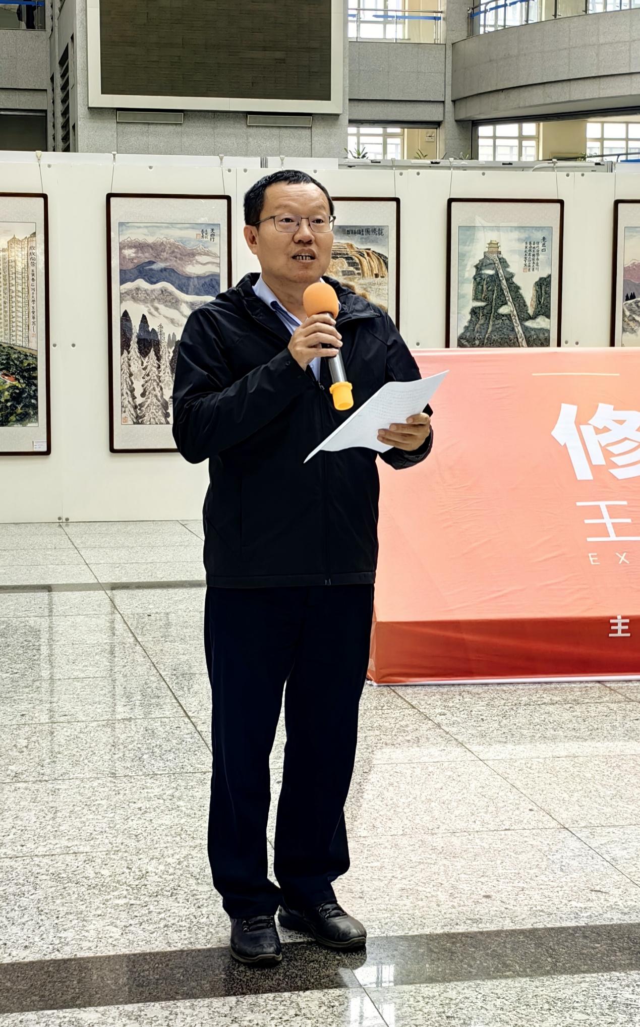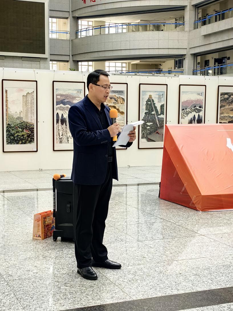 美术与设计系主任刘洪教授代表全系师生祝贺画展开幕,并代郭承云先生诵读贺信