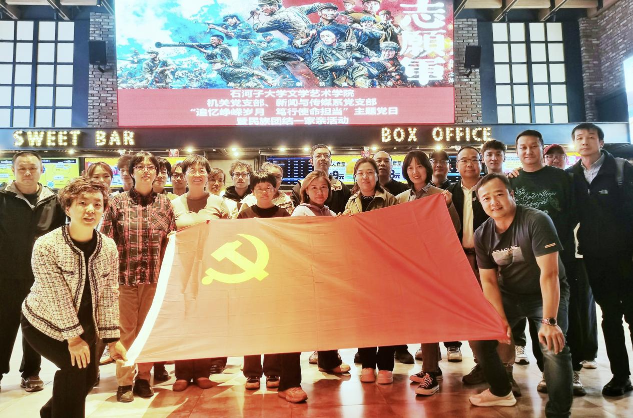 1016日下午4点,文学学术学院机关党支部携手新闻与传媒系党支部师生党员及结亲学生,一同前往石河子市103电影院观看主旋律影片《志愿军:存亡之战》。