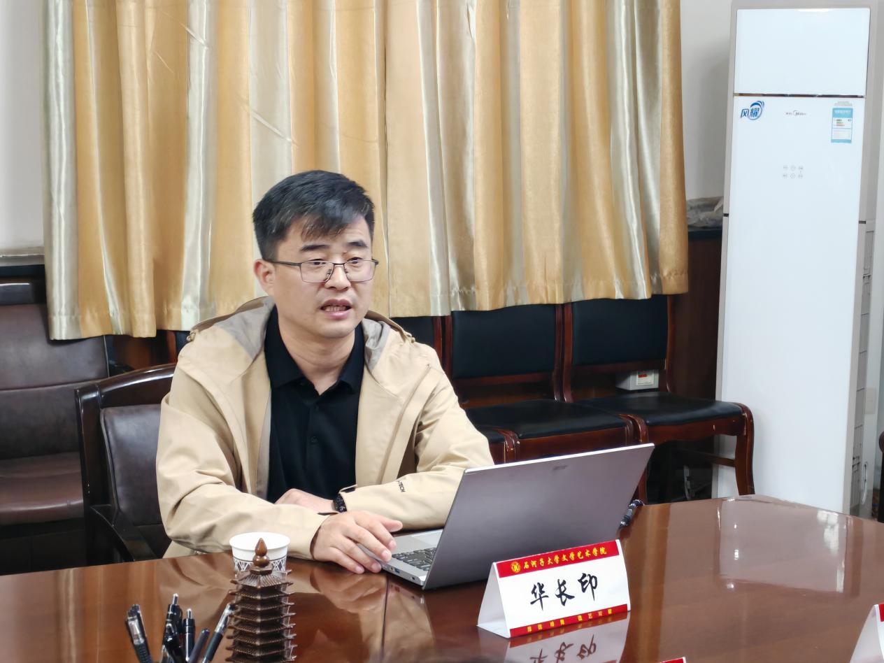 刘洪主任向华社长一行介绍了美术与设计系的办学情况。他指出,beat365官网美术与设计系在国家一流本科专业建设、硕士学位点建设方面已经取得了相当的成绩,但在高水平学术论著、高质量教材建设方面仍然存在很大的提升空间,希望双方能够多层面拓展合作与交流渠道,积极推动学术共同体建设。