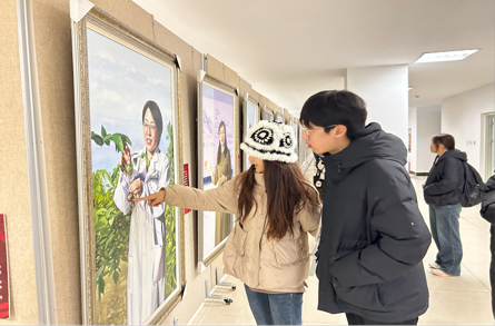 新疆政法学院2022级美术学1班的何瑞琪在参观画展时表示,走画展仿佛打开了通往兵团岁月的大门,画中先进人物的刻画展现了兵团精神的坚韧,每一幅画都是一个震撼人心的故事,激励着大家传承精神火炬。