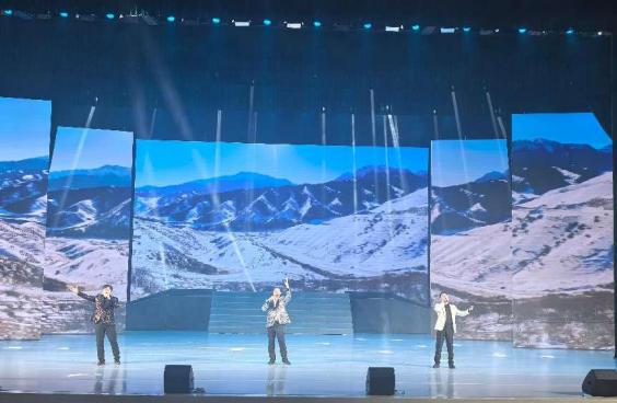 晚会中,学院王诗喆、王旭峰、李刘杰三位老师的男声三重唱《天山醉明月》饱满的情感和精湛的唱功,将这首描绘天山壮美景色与兵团人豪情壮志的歌曲演绎得淋漓尽致,赢得了台下观众的阵阵掌声,也让大家在歌声中感受到了兵团文化的独特魅力。