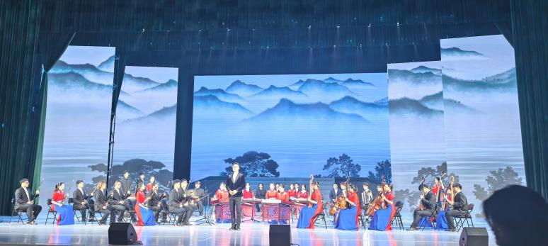 陈腾飞老师带领民乐团演奏的《璀璨风华》更是将晚会气氛推向了高潮。古筝、二胡、竹笛等传统民族乐器相互交织,奏出了一曲曲动人心弦的乐章。乐声时而激昂奋进,时而婉转悠扬,仿佛在诉说着中华民族悠久的历史和灿烂的文化,展现出传统音乐的博大精深与无穷魅力,让现场师生沉浸在民族音乐的海洋中,如痴如醉。