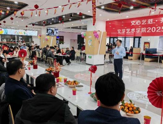 活动现场温馨而喜庆,师生们用精彩的歌舞节目、有趣的游戏、用心制作饺子,表达着对新年的期待。李景彬常委及学院领导表彰了一年来在科研、教学、文艺创作、管理服务等方面表现优异的教师。