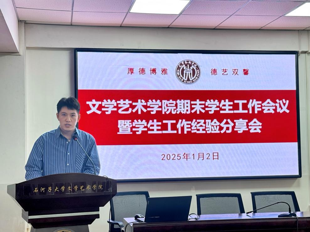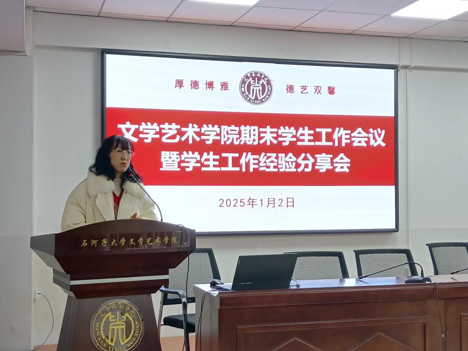 学院党委副书记蓝燕飞在会议中强调寒假期间学生管理工作要求,部署2025届毕业生就业工作,强调做好考试周考试诚信教育、防诈骗宣传教育等。最后他提到本学期,学院在学生工作方面取得了显著成效,一是通过加强思想政治教育、丰富校园文化活动、优化学生管理服务等措施,有效促进了学生的全面发展。二是以学生为中心,全心全意服务学生,学生工作质量和水平全面提升。三是就业工作取得积极进展,通过举办线上线下招聘会、加强校企合作、提供个性化就业指导等措施,有效拓宽了学生就业渠道。