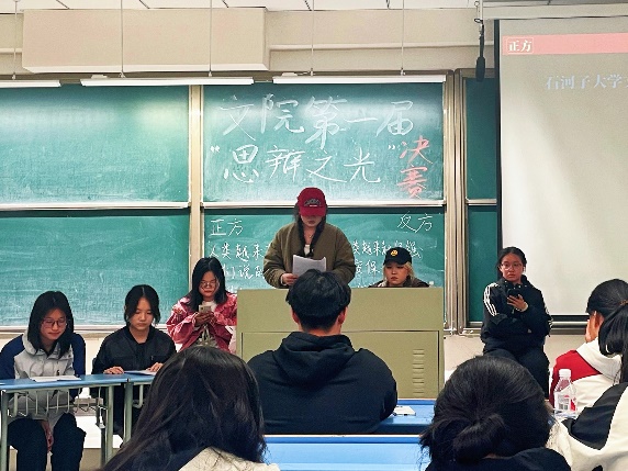 为培养青年思辨能力,营造校园思辨文化氛围,beat365官网于近日在博学楼A519成功举办第一届“思辨之光”辩论赛总决赛。经过激烈角逐,2024级汉语言文学三班代表队荣获冠军。