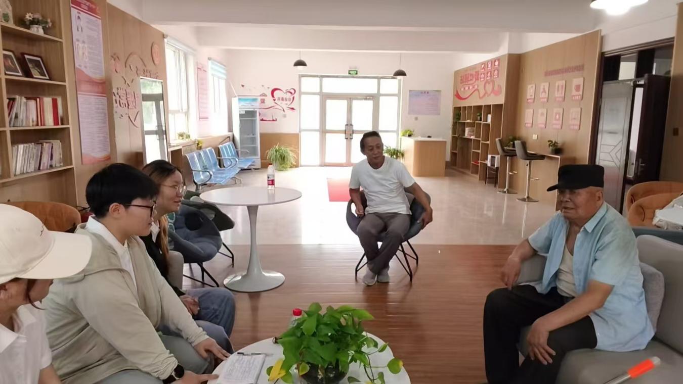 在北社区,老党员单岐愿同志向实践团讲述了1966年随父进疆的奋斗历程。他回忆道:“建团初期住地窝子、人拉犁开荒,第二年就实现了粮食自给。”他特别讲述了80年代职工义务劳动治理盐碱地的感人事迹。