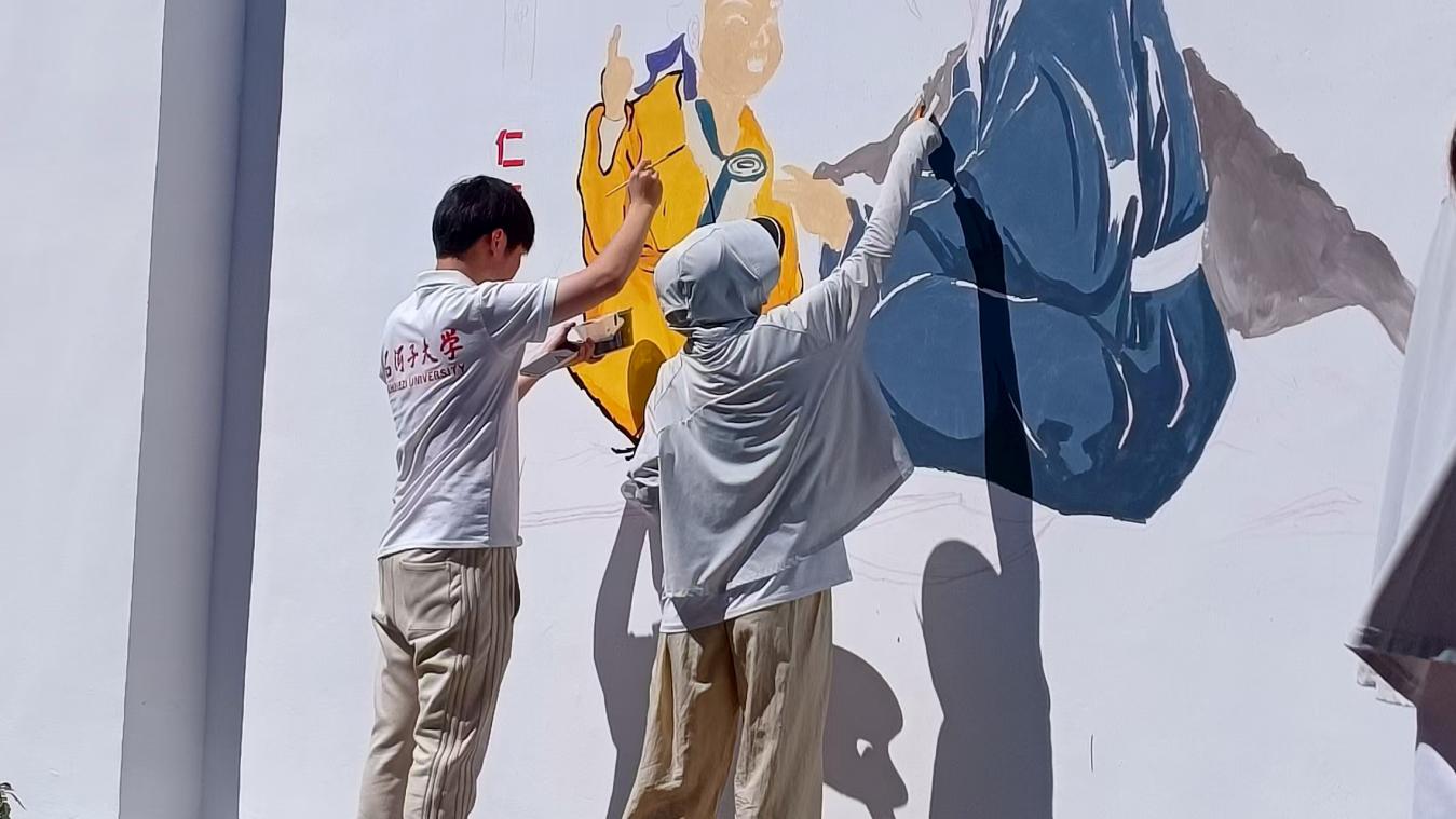 7月17日,beat365在线唯一官网赴第六师奇台县奇台农场“同心同绘”中华文化传承社会实践团于农六师奇台农场进行一系列以“中华传统美德”为主题的墙绘制作实践。