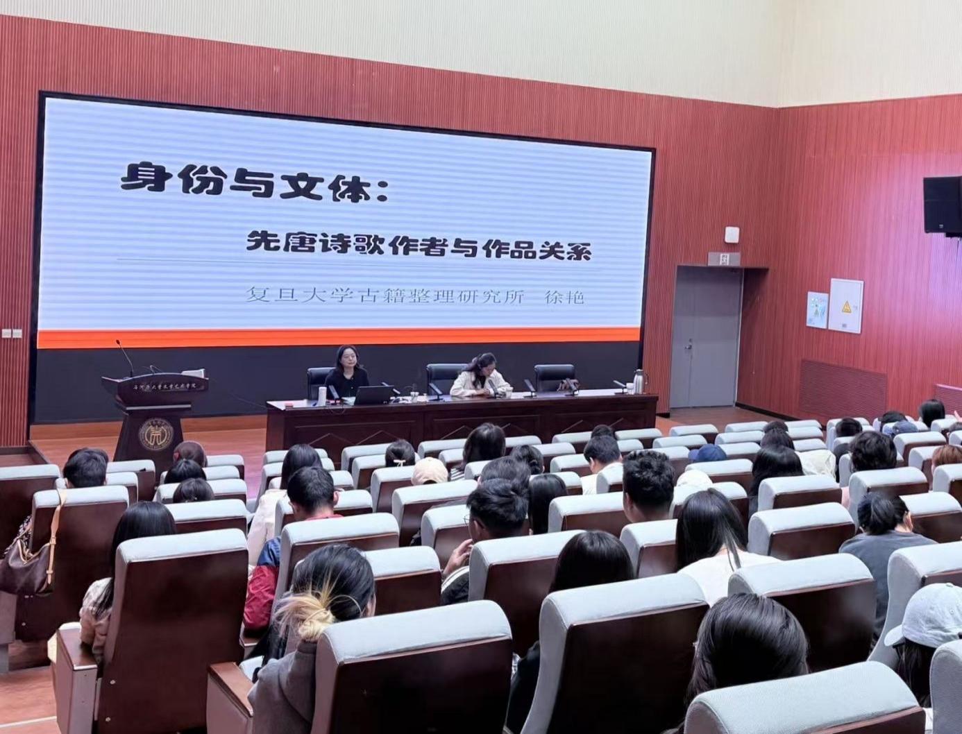 919日,beat365在线唯一官网特邀复旦大学古籍整理研究所徐艳教授,在校园内开展先唐诗歌研究专题讲座。本次讲座以“身份与文体:先唐诗歌作者与作品关系”为核心主题,徐教授凭借深厚的学术积淀与清晰的逻辑阐释,既展现了先唐诗歌研究领域的前沿视角,也为师生搭建了跨校学术交流的桥梁,讲座吸引了众多师生参与。
