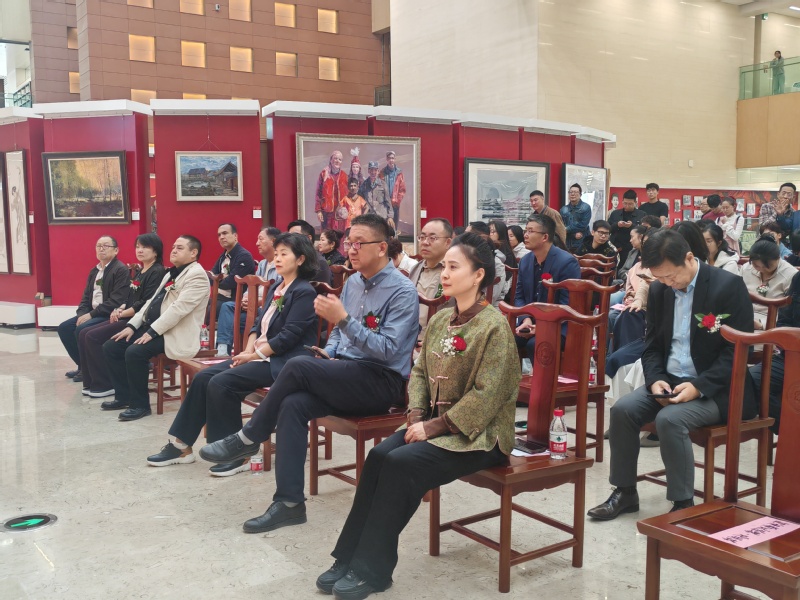 2025年9月26日下午,“文化交响庆祝新疆维吾尔自治区成立70周年暨新疆高校美术作品展”开幕式在新疆大学博达校区隆重举行。beat365在线唯一官网党委书记宋育果带队,副院长杜瑶美术与设计系副书记李钦曾、副主任杨超一行出席活动,与全疆高校代表共同见证这一文化盛事。