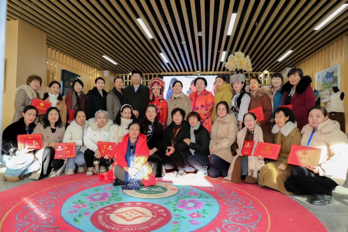 结业仪式氛围庄重热烈,与会领导为结业学员颁发证书,肯定大家在刺绣技艺与融合创新上的付出,学员们满脸喜悦与自豪;同时为表现突出的优秀学员授予荣誉证书,既嘉奖个人,也为全体学员树立榜样,激励大家将所学转化为动力,助力新疆刺绣传承发展。
