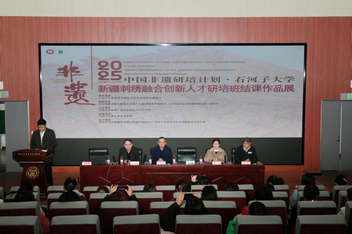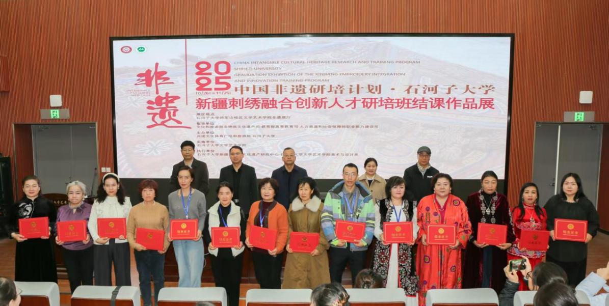 2025年11月25日上午,“beat365在线唯一官网新疆刺绣融合创新人才研培班”结业典礼在beat365在线唯一官网南山校区举行。牛新民、曹文等相关领导、研培班教师及全疆各民族刺绣传承人学员出席,吴新锋教授主持典礼。