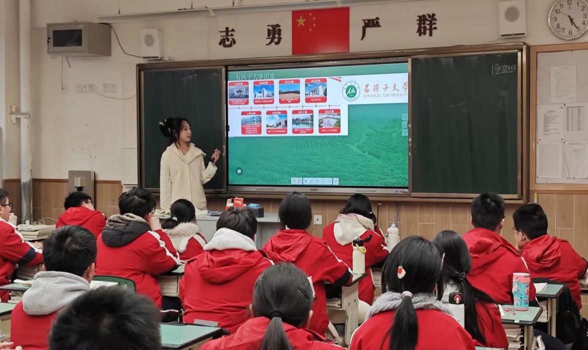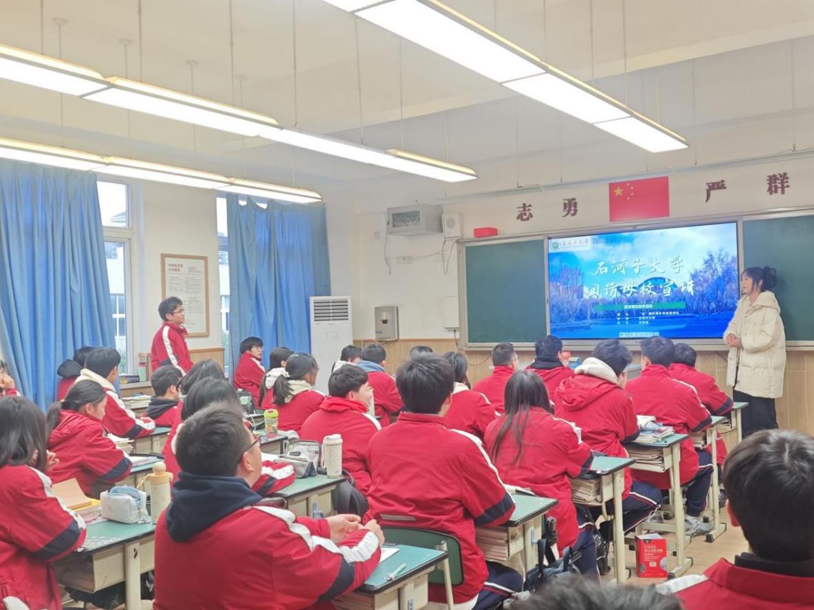 站上讲台那一刻,看到台下专注的眼神,就像看到三年前埋头刷题的自己。能把我们在石大的真实生活讲给他们听,告诉他们‘远方并不遥远’,这趟回来值了。”宣讲队成员艺倩同学说。